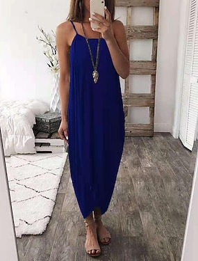 Dames Casual jurk Lange jurk maxi-jurk Splitsen Afspraakje Bohemen Boho Spaghettibandjes Mouwloos Zwart Wit blauw Kleur