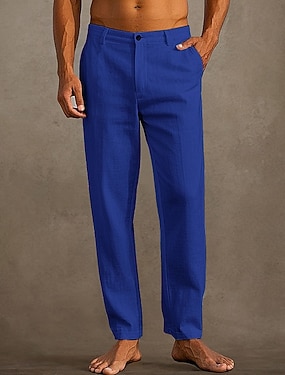 Voor heren Linnen broek Broek Zomerbroek Wijde broek Strandbroeken Trekkoord Elastische taille Recht been Effen Comfort Ademend Volledige lengte Casual Dagelijks Feestdagen Vakantie Modieus blauw