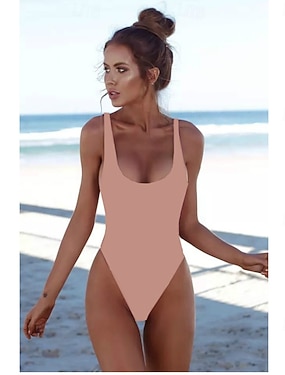 Dames Zwemkleding Een stukje Hoge taille Zwempak sexy uitsnijding Afslanken Hoog getailleerd Blote rug Elegant Actief Effen Kleur U-hals Mouwloos Badpakken