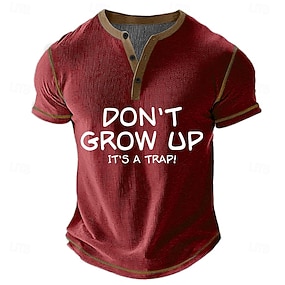 Heren Grappige Korte Mouwen Henley Grafische T-shirt met 'Groei Niet Op Het Is Een Valstrik!' Quote - Lifestyle Humor