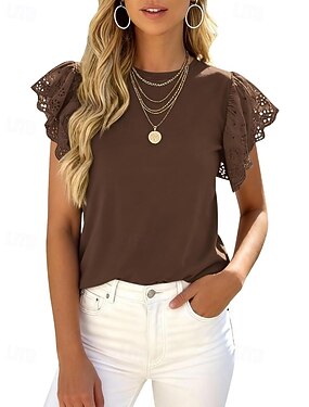 Dames Overhemd Blouse Ruche Lapwerk Effen Elegant Actief Vakantie Korte mouw V-hals Normale tops Dagelijks Feestdagen Uitgaan Zwart Wit Bruin Zomer Lente