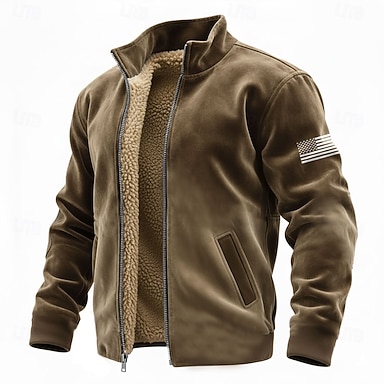 Voor heren Wolf Fleece Sweatshirt Modieus Dagelijks Eenvoudig Casual Opstaand Rits Buiten Vakantie Lahja Uitgaan blauw Bruin Zak Ritssluiting aan de voorkant Herfst Winter Ontwerper S M L XL XXL 3XL