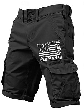 cargoshort voor heren, meerdere zakken, oude man-letterprint, buitenshort, klassieke micro-elastische sportshort