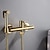 waterval bad kraan wandmontage, wijdverspreide badkamer douche mengkraan bad romeinse badvuller mengkraan messing, 3 gat sproeier met koud warm water slang