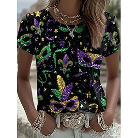 Carnaval Mardi gras Dames T-shirt Afdrukken Grafisch Vintage Modieus Stijlvol Korte mouw Strakke ronde hals Normale tops Dagelijks Lichtgroen Paars Groen Zomer Lente