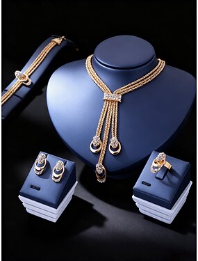 dames sieradenset van goudkleurig kristal - elegante meerlaagse ketting, oorbellen, armband en ring voor bruiloften, avondfeesten en formele mode-looks