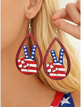 Verenigde Staten 250ste Verjaardag Vrouwen Houten USA Vlag Druppel Oorbellen Lichtgewicht Patriottische Dangle Juwelen Meerdere Stijlen Beschikbaar Casual Boho Stijl voor Dagelijks Gebruik