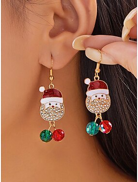 Kerstoorbellen voor dames met strass-steentjes en kleurrijke kralen, feestelijke vakantiesieraden