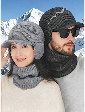 unisex gebreide muts en sjaalset van acryl, verstelbare oorkleppen, meerdere kleuren, perfect voor wintersport en buitenactiviteiten