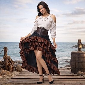 Set Middeleeuws Renaissance Rok Blouse / overhemd Korset met accessoires Piraat Kostuum Dames Piraat Halloween Carnaval Maskerade Renaissance beurs Retro themafeest Volwassenen Blouse Rok Korset