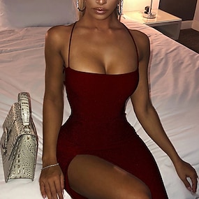 Dames Halflange jurk Zwarte jurk Jurk met lovertjes Feestjurk Casual jurk Elegant Modieus Modern Dagelijks Buiten Strand Slank Effen Mouwloos Halternek Zwart Lente Herfst
