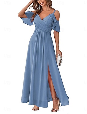 dames maxi-jurk chiffon effen mismatched ruches mouw bruiloft gast elegant lente zomer herfst