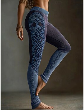 Vrouwen Viking Boho Leggings Vintage Etnische Stijl Volledige Lengte Hoge Taille Grafisch Abstract 3D Print Sneldrogend Ademend Zacht Rekbaar Formeel Vakantie Roze Zomer Lente Herfst Winter Reguliere