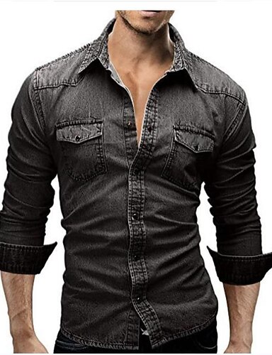 Voor heren Overhemd Normaal shirt Jeanshemd Overhemd met knopen Denim overhemd Spijkerbroekblauw blauw Lichtgrijs Donkergrijs Lange mouw Effen Strijkijzer Vakantie Dagelijks Voorvak Kleding Katoen