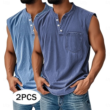 Voor heren Singlet Vest Top Onderhemd Mouwloos shirt Mouwloos Henley Zomer Effen Modieus Basic Retro vintage Zak 2-stuks Bleek Casual Vakantie Straat A B C Top T-shirt voor mannen