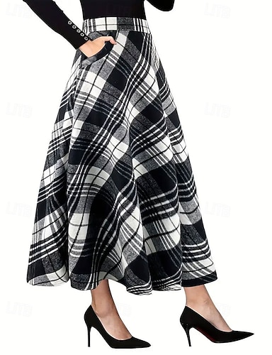 Dames Rok A-lijn Elegant Modieus Maxi Hoge taille Rokken Ruitjes Zak Afdrukken Micro-elastisch Kerstmis Straat Rood blauw Groen Khaki Lente Polyester