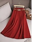 Dames Rok Elegant Vintage Modieus Maxi Medium Taille Rokken Met ruches Geplooid Zak Micro-elastisch Nieuwjaar Feestavondkleding Rode Wijn Lente 100% Polyester