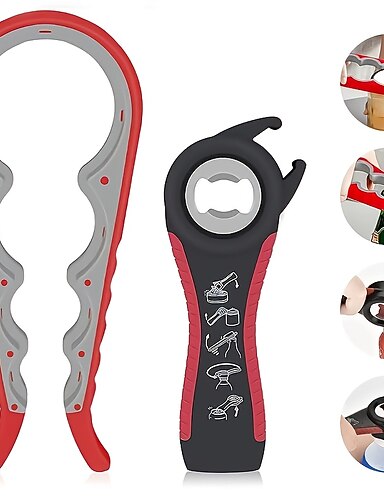 potopener 5 in 1 multifunctionele blikopener flesopener kit met siliconen handvat gemakkelijk te gebruiken voor kinderen ouderen en mensen met artritis