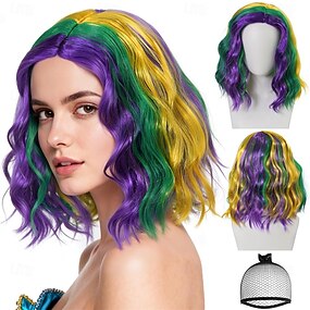 Carnavalpruik 2026 Groen Gekruld Bob Kort Synthetische festivalpruik Mardi Gras Parade Cosplay Kostuum Haar voor Dames