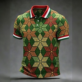 Voor heren Geometrisch Poloshirts Korte mouw Poloshirt Overhemden met kraag Casual Sportkleding 3D-afdrukken Knop Zomer Lente Groen