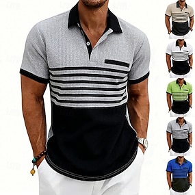 Voor heren Wafel Poloshirts Poloshirts Casual Straat Revers Korte mouw Basic Modern Gestreept Lichtgewicht Knop Zomer Lente Normale pasvorm Wit Koningsblauw Groen Khaki Licht Grijs Wafel Poloshirts