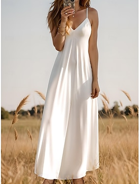 Dames Maxi Jurk Zomerjurk A-lijn Jurk Slip Jurk Vakantie Casual Vakantie Dagelijks Strand Regular Fit Effen Kleur Grafisch Effen Mouwloos V-hals Zwart Wit Geel Wijn Zomer Lente