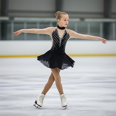 Kunstschaatsjurk Voor meisjes Schaatsen Jurken Zwart Lapwerk Open achterkant Rekbaar Opleiding Wedstrijd Kunstschaatskleding Klassiek Kristal / Bergkristal Lange mouw Schaatsen Kunstschaatsen