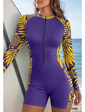 Dames Uitslagbescherming Badpak Sportieve badmode Bloemig Rits omhoog Verwijderbare vulling Rits Aan De Voorzijde UV-zonbescherming UPF50+ Ultralicht (UL) Lange mouw Zwemkleding Uitslagbescherming