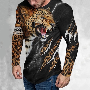 Voor heren Grafisch dier Luipaard T-shirt T-shirts Lange mouw T-shirt 3D-afdrukken Strakke ronde hals Overhemd Vintage Modieus Ontwerper Buiten Casual Dagelijks Bruin Lente & Herfst Kleding S M L XL