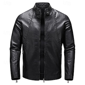 Voor heren Jas van imitatieleer Fleecejack Bikerjack Motorjas Vakantie Dagelijks Winddicht Houd Warm Zak Herfst Winter Effen Modieus Klassiek Revers Normaal Zwart Wijn Jacks