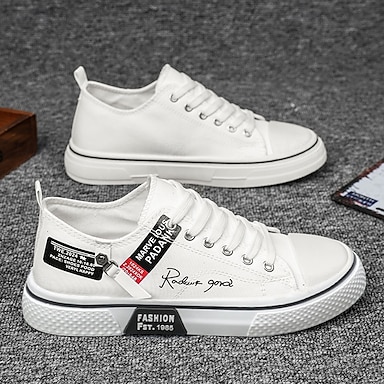 Voor heren Sneakers Wandelen Casual Dagelijks Canvas Comfortabel Anti-slip Veters Wit Zomer Lente Herfst