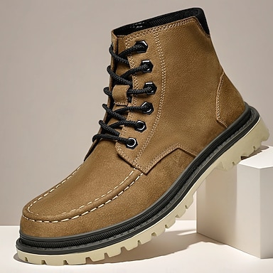 Voor heren Laarzen Werk laarzen Wandelen Vintage Dagelijks PU Comfortabel Kuitlaarzen Veters Zwart Khaki Herfst Winter