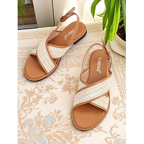 Dames geweven sandalen met kruisbandjes – boho casual slippers voor zomerwandelingen en romantische dates overdag
