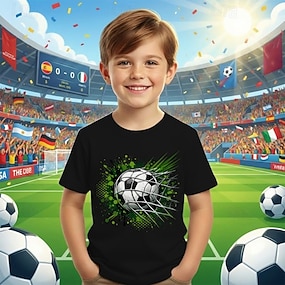 Jongens 3D Voetbal T-shirt Korte mouw Zomer Lente Modieus Basic Kinderen 4-12 jaar Strakke ronde hals Buiten Casual Dagelijks Normale pasvorm