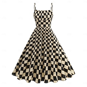 Retro vintage Jaren '50 Hepburn Middag Jurken Een lijnjurk Flare Jurk Spaghetti Bandjes Ruitjes Wijd uitlopend Kostuum Dames Carnaval Valentijnsdag Casual Schoolfeest Retro themafeest Volwassenen