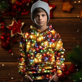 Kerstmis Jongens 3D Tekenfilm Trui met capuchon Lange mouw Lente Herfst Modieus Streetwear Kinderen 4-12 jaar Capuchon Buiten Casual Dagelijks Normale pasvorm