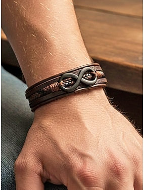 Herenarmband van imitatieleer en legering met oneindigheidssymbool, meerlaags gevlochten ontwerp, casual vintage stijl, verkrijgbaar in verschillende kleuren, perfect voor vakantie en alledaagse casual outfits.
