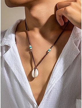 boho cowrie schelpenketting voor heren – handgemaakte leren koordhanger met kralen, strandsurferstijl, verstelbare tribale choker voor de zomer, reizen en casual wear