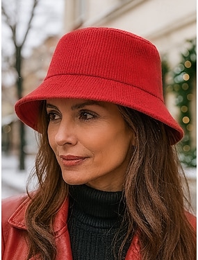 Corduroy bucket hat voor dames, comfortabele wintervisserspet voor kerstvakantie-outfits, warme retro-stijl hoed voor buitenwandelingen en feestelijke bijeenkomsten