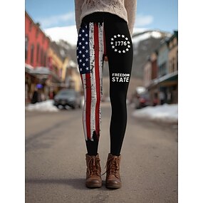 Onafhankelijkheidsdag Amerikaanse verjaardag patriottische vrouwen leggings vakantie vintage etnische stijl volle lengte hoge taille grafisch vlag geometrische ademend zacht comfortabel rekbaar