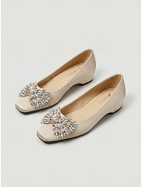 Champagnekleurige ballerina's met lage hak en verborgen sleehak – elegante, versierde pumps voor de moeder van de bruid, voor een stadsbruiloft &formele evenementen