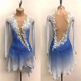 Kunstschaatsjurk Dames Voor meisjes Schaatsen Jurken Blauw / wit Lapwerk Asymetrische zoom Spandex Netstof Hoge Elasticiteit Opleiding Wedstrijd Kunstschaatskleding Klassiek Kristal / Bergkristal