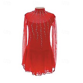 Kunstschaatsjurk Dames Voor meisjes Schaatsen Jurken Rood Lapwerk Duimopening Netstof Spandex Rekbaar Opleiding Oefenen Professioneel Kunstschaatskleding Thermisch Warm Kristal / Bergkristal Lange