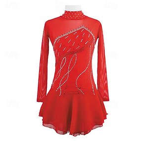 Kunstschaatsjurk Dames Voor meisjes Schaatsen Jurken Rood Lapwerk Duimopening Netstof Spandex Rekbaar Opleiding Oefenen Professioneel Kunstschaatskleding Thermisch Warm Kristal / Bergkristal Lange