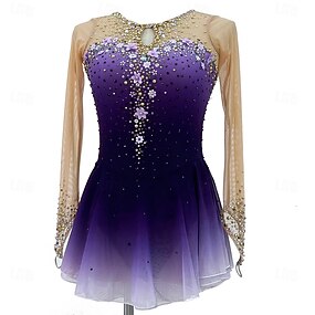 Kunstschaatsjurk Dames Voor meisjes Schaatsen Jurken Paars Duimopening halo-verf Hoge Elasticiteit Professioneel Wedstrijd Kunstschaatskleding Thermisch Warm Kristal / Bergkristal Lange mouw