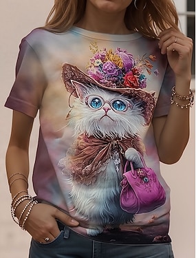 Dames T-shirt Afdrukken Grafisch dier Vintage Stijlvol Klassiek Korte mouw Strakke ronde hals Ronde hals Normale tops Dagelijks Weekend Zwart En Rood Wit / blauw Stoffige roos Zomer Lente Herfst