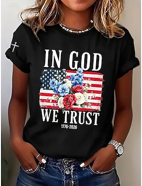 Amerikaanse onafhankelijkheidsdag Dames T-shirt Afdrukken Bloemig Grafisch Vlag Stijlvol Klassiek Casual Korte mouw Strakke ronde hals Ronde hals Normale tops Casual Dagelijks Zwart Rood Zomer Lente