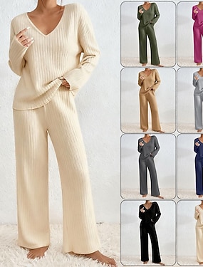 Dames Broeken Sets Lange mouw V-hals Effen Kleur Modieus Streetwear Casual Dagelijks Buiten blauw Zwart Leger Groen Lente Ruim Passend