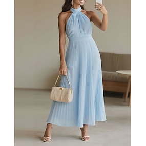 Dames Lange jurk maxi-jurk Schede jurk Chiffon jurk Jurk met halternek Elegant Modieus Modern Dagelijks Kantoor Vakantie Normale pasvorm Effen Mouwloos Halternek blauw Zomer Lente Herfst Winter