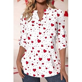 Valentijnsdag Dames Overhemd Zak Hart Grafisch Elegant leuke Style Dagelijks 3/4 mouw V-hals Dagelijks Werk Feestdagen Wit en rood Zomer Lente Herfst Winter